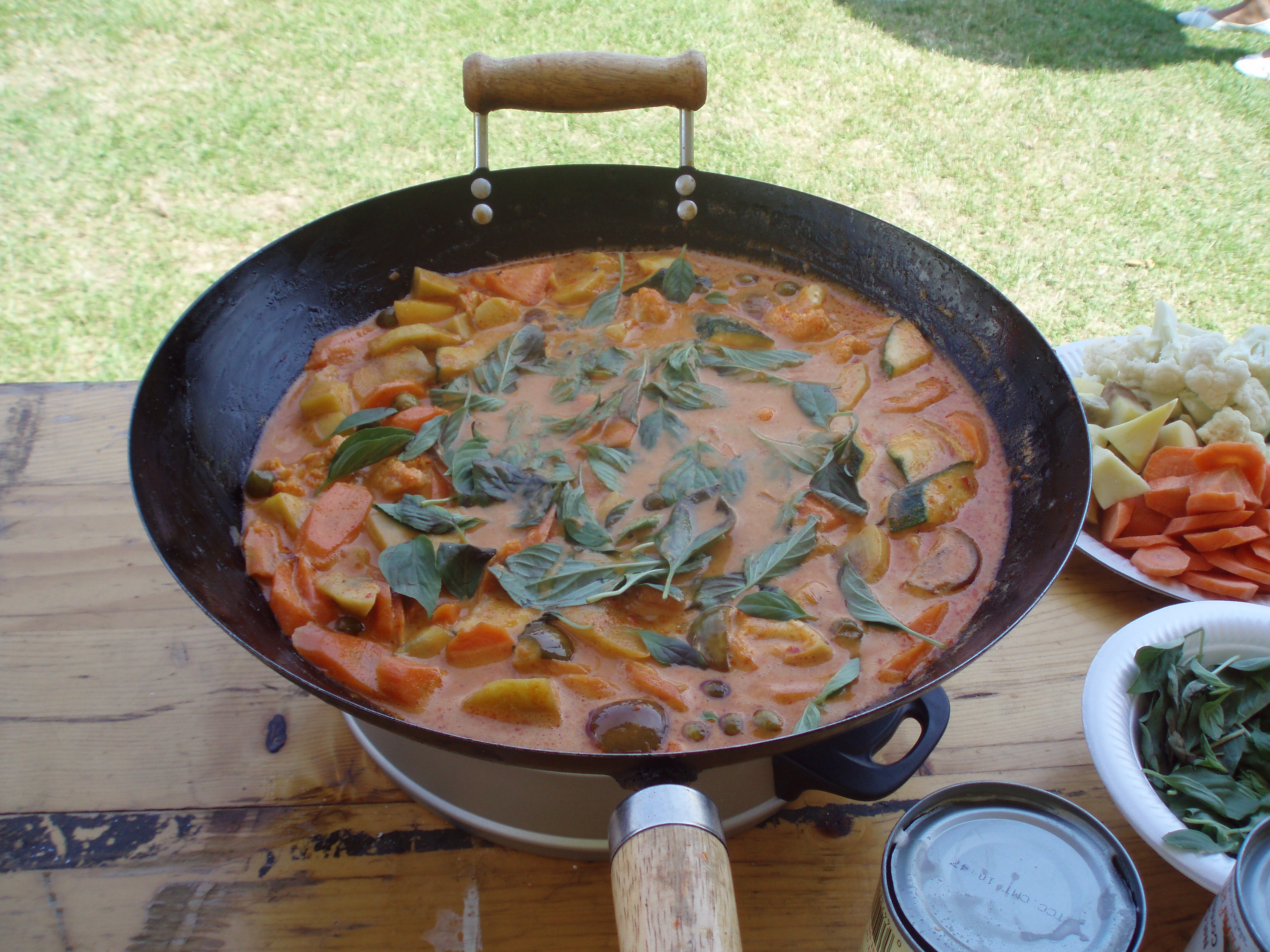 Over the years, my mum and I have been to a few Thai Festivals in Southern England to promote the Thai Cooking School. We would teach a dish, for example Pad Thai (stir-fried rice noodles with vegetables), and sell the ingredients to make at home. At one event, several years ago, my mum made a Thai red curry, pictured below.
