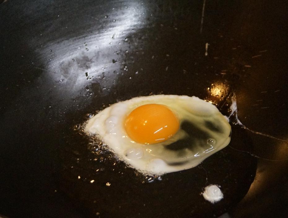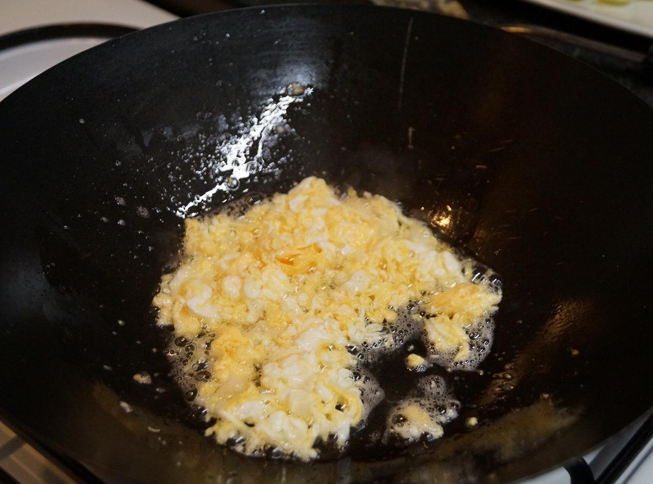 Start with the egg in a wok with a dessert spoon of vegetable oil on a medium heat.