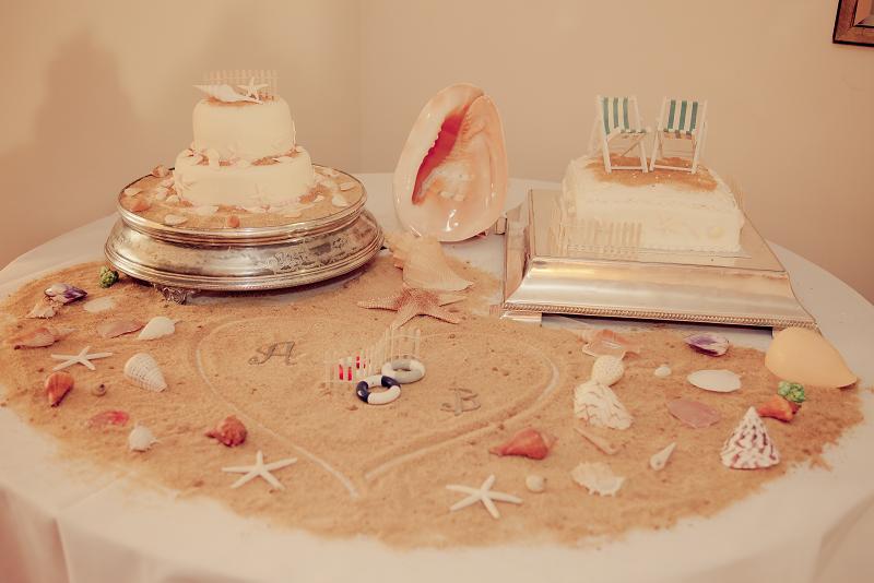 We had a beach themed wedding as Andy proposed on the headlands in Pentire, Cornwall, overlooking the sea at sunset. The bridesmaids and I wore flip flops to the evening reception, our table names during the wedding breakfast were beaches in Cornwall (where Andy’s family and friends were seated) and Thailand (for my buddies and relatives), and we had little bottles filled with sherbet to replicate coloured sand as wedding favours. Andy and I made a lot of the items used on the day. He made ‘Mr & Mrs’ and ‘Thank You’ signs out of wood as well as little engraved blocks to hold the postcards of beach destinations for each table. I made the wedding favours and little colouring packs to keep the children entertained during the meal. We had two wedding cakes on the day decorated with shells, deck chairs and dusted with brown sugar, to replicate sand.
