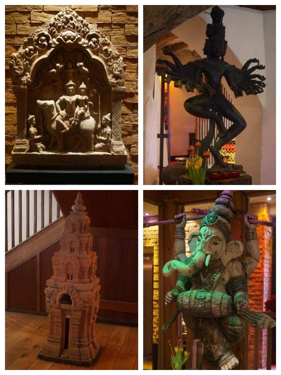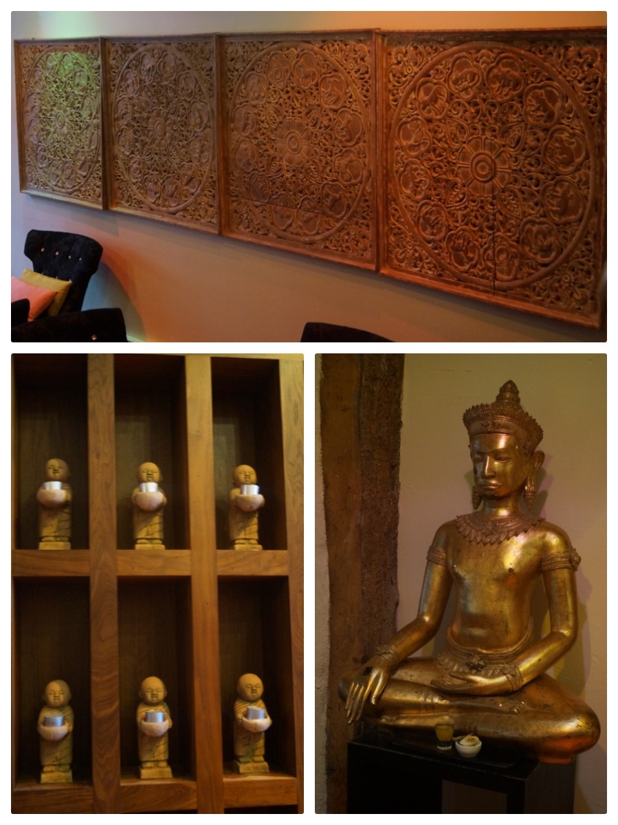 The restaurant is a beautiful mix of Thai and English, modern and traditional. The owner, although not Thai, upholds and respects the Buddhas and Ganesha (Ganesh) on display by leaving offerings of milk, orange juice, banana and food.