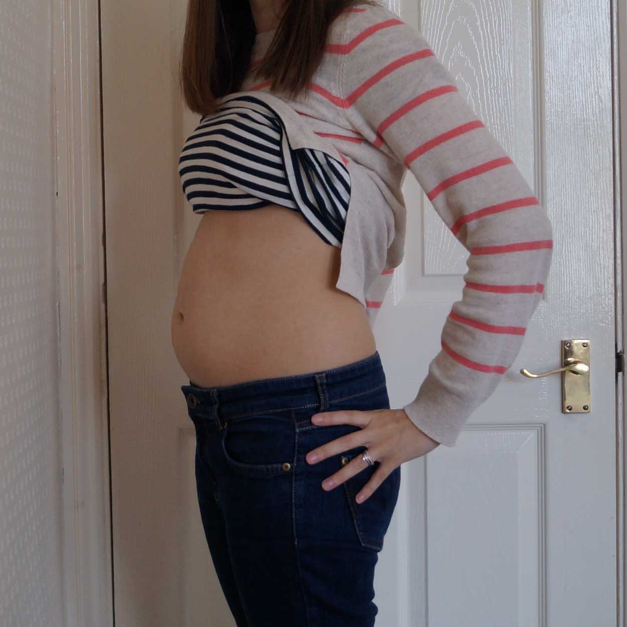 I’m not wearing anything maternity as my regular jeans, Cherry from Oasis, are a bit lose. During my first pregnancy I had already started wearing maternity trousers from about 9 weeks as my stomach felt really tight and my ribcage started to feel as though it was expanding.