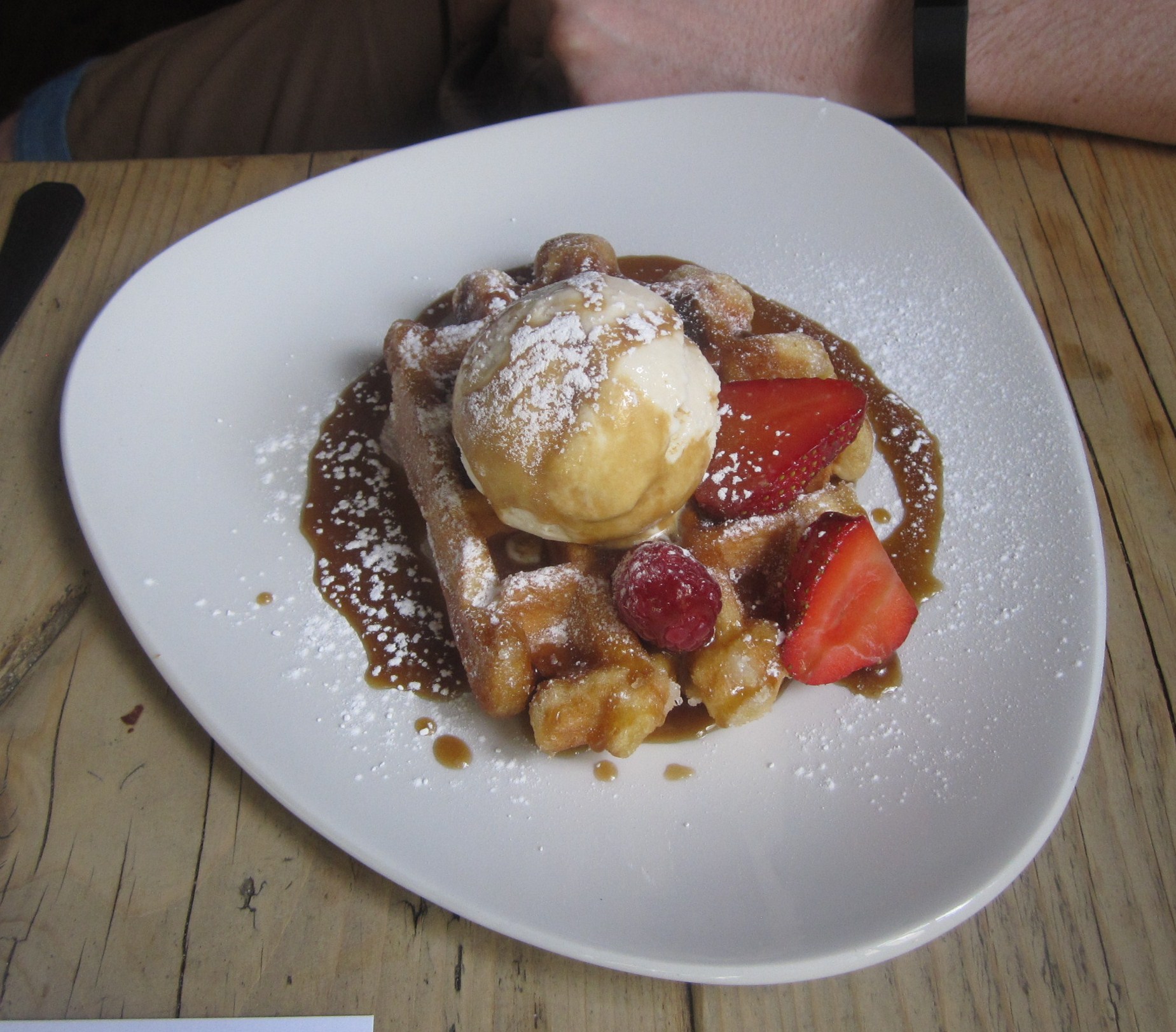 For dessert, Andy had a Belgium waffle with ice cream and toffee sauce. This was yummy and I had quite a big bit of Andy’s as I was still hungry after my roast. I probably should have got Annabelle her own lunch but they didn’t have a children’s roast option and I didn’t want her to have anything with chips as she had some on Saturday.
