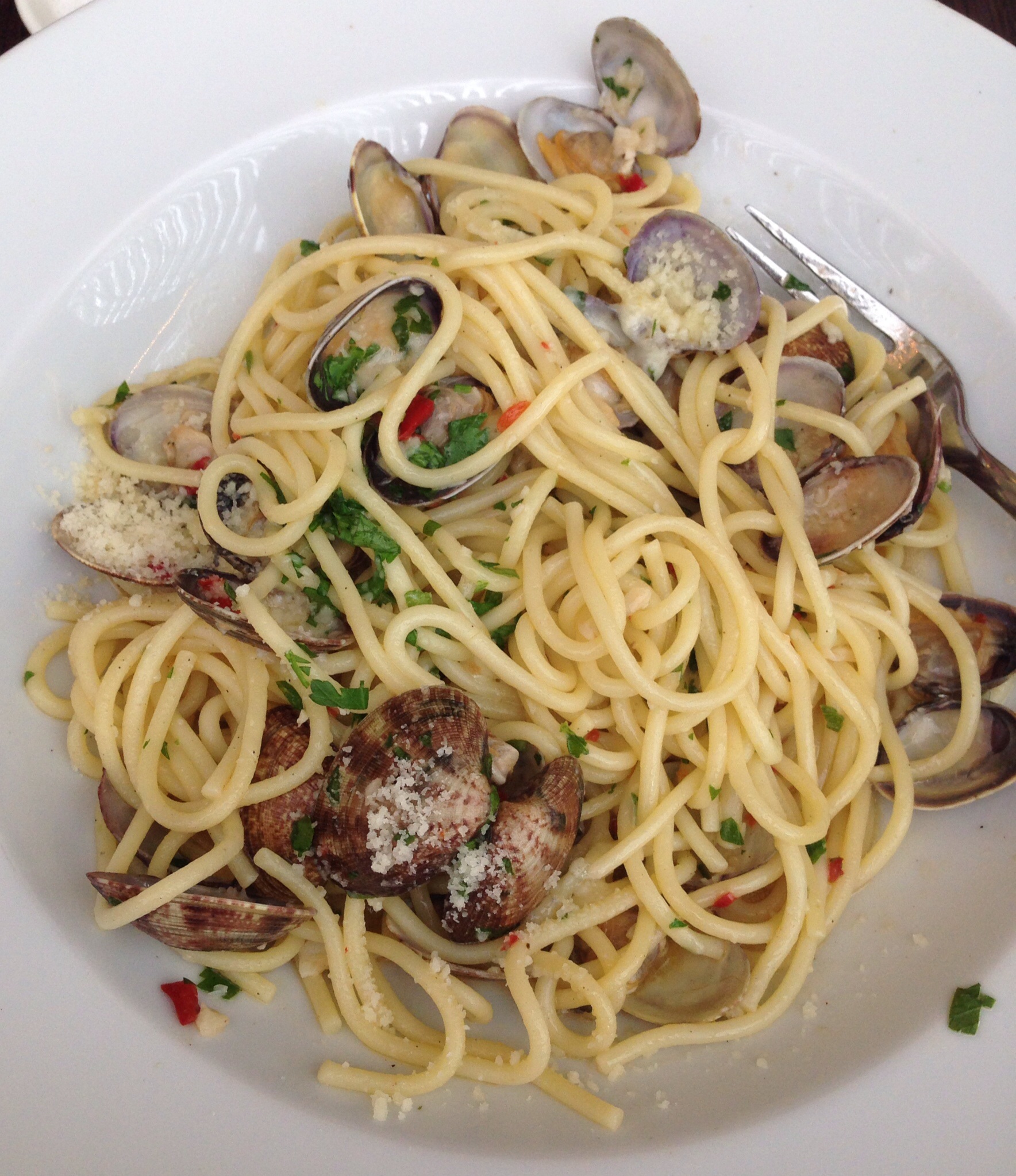 We went to The Mall at Cribbs Causeway, Bristol, today so for lunch I had Carluccio’s Spaghetti alle Vongole in Bianco (spaghetti with clams, garlic and chilli). I also ate a bit of Andy’s pasta (Linguine al Frutti di Mare – Linguine with seafood, herbs and chilli) as he filled up on bread!