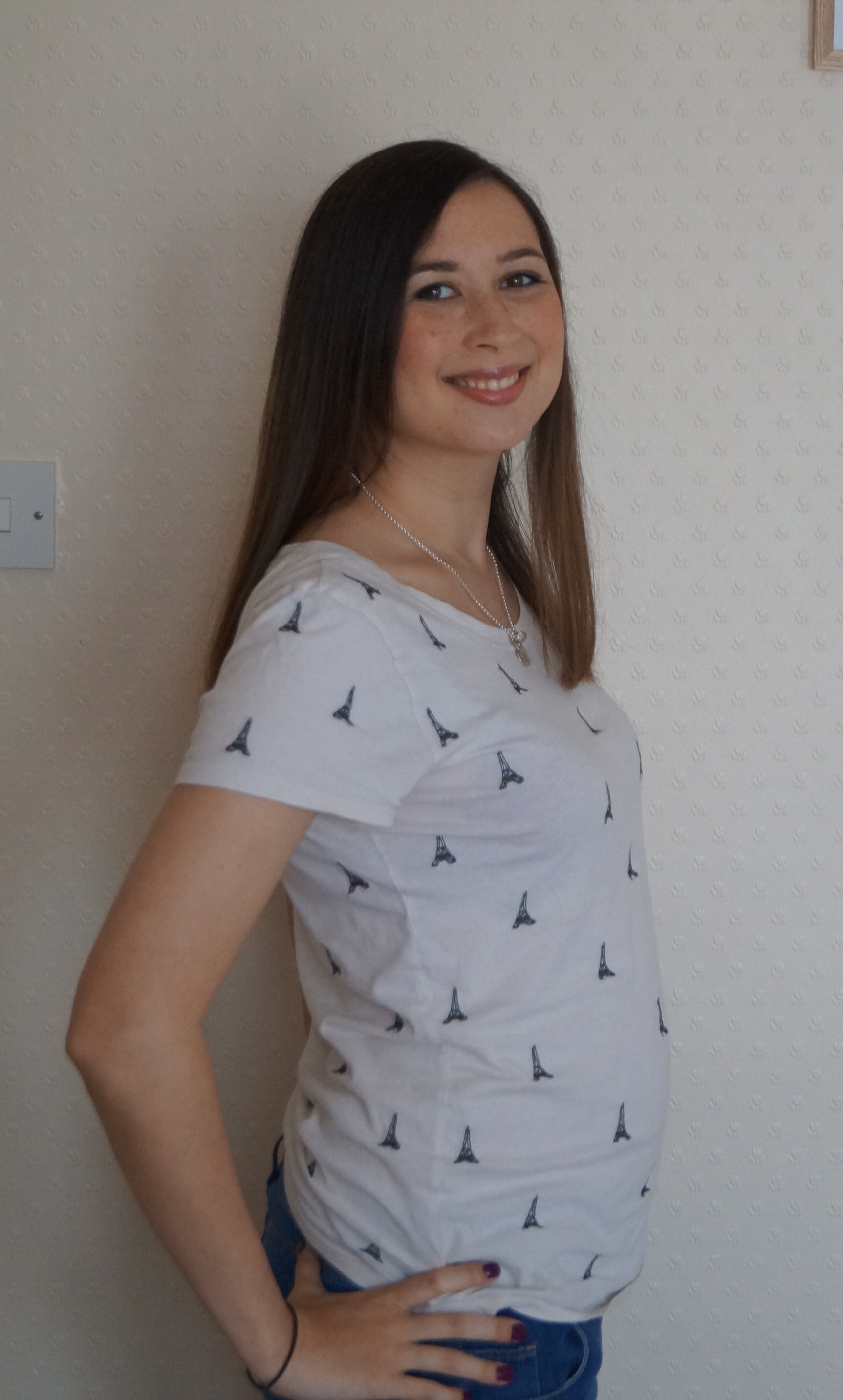I’m wearing: The Leigh Topshop maternity jeans as the button fastening on my regular jeans irritate when I sit down or if I have just eaten. They are a little bit baggy when I walk and slide down but I’m in between sizes so the 8s are too tight. I might try some ASOS jeans to see if they are a slightly better fit until I get a bit bigger. My T-shirt is from also from Topshop but it is not maternity and I bought it a few years ago.