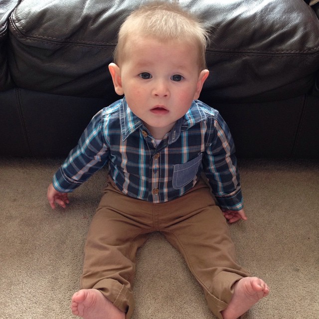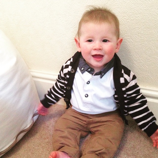 I also managed to find this blue checked shirt in the sale for £2! What a bargain. I wasn’t quite sure about the sizes as 6-9 months seems small. The trousers are 9-12 months and are quite long. They do have an adjustable waist however and this improves the fit for Heath.